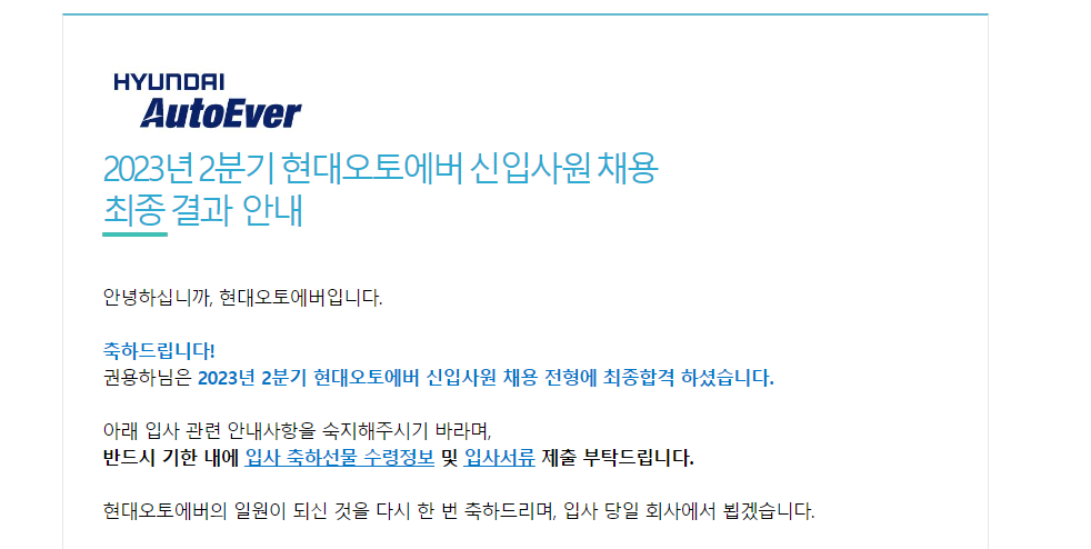 그리고 몇 일 뒤에 현대 오토에버도 붙었다고 연락이 왔습니다.